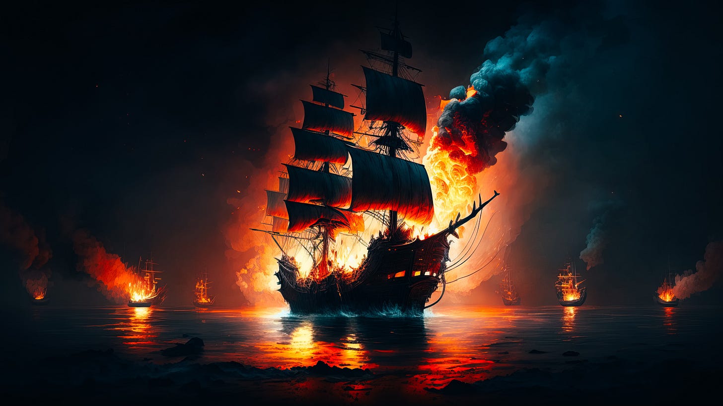 There’s been a resurgence of the “burn your boats” meme, meaning don’t have a back-up plan. This comes from a tale where an invader landed his army to fight an opposing force and burned his ships so they could not retreat back to the sea. By doing this there was no option for failure/retreat, so this force had to fight to win.