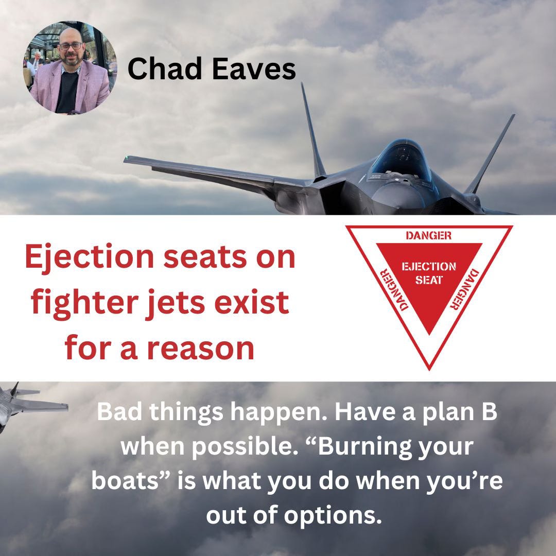 Speaking of saving the day, there are reasons fighter planes have ejection seats. It’s for when Plan A falls apart around you. As demonstrated by this Instagram post.